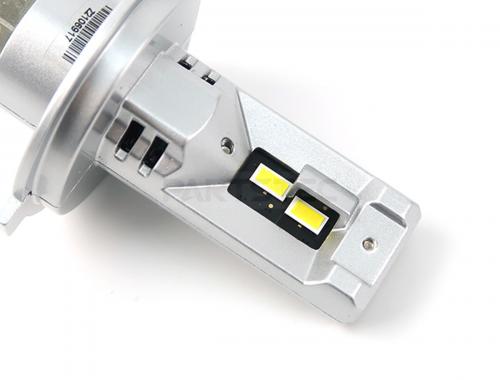 ハロゲン球に比べてとても明るく、視認性抜群のLEDヘッドライトバルブです。HIDに比べても瞬時に点灯し、夜間走行時にクリアな視界を確保できます。ハロゲンのフィラメントとほぼ同じ位置になるよう設計し、はっきりしたカットラインを実現しています。極性もございませんので、純正のH4バルブと交換するだけで簡単に取り付けできます。