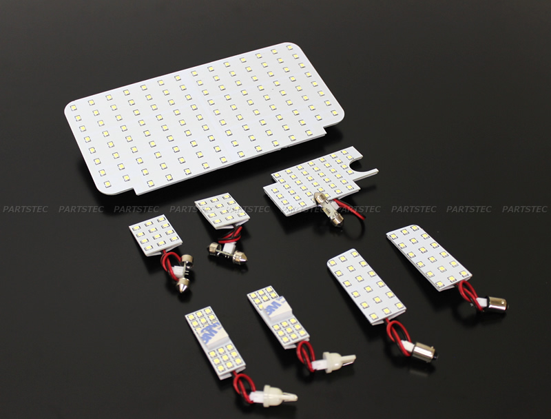 ハイエース200系スーパーGL/ワゴンGLのLEDルームランプになります。1型、2型、3型、4型、5型、6型に対応したアイテムです。超高輝度LED採用で純正ハロゲンに比べ大幅に超寿命を実現し消費電力を大幅ダウンで、バッテリーにも優しいです。専用設計なのでぎりぎりまで多くのLEDを使い、車内とは思えないほどの明るさになります。