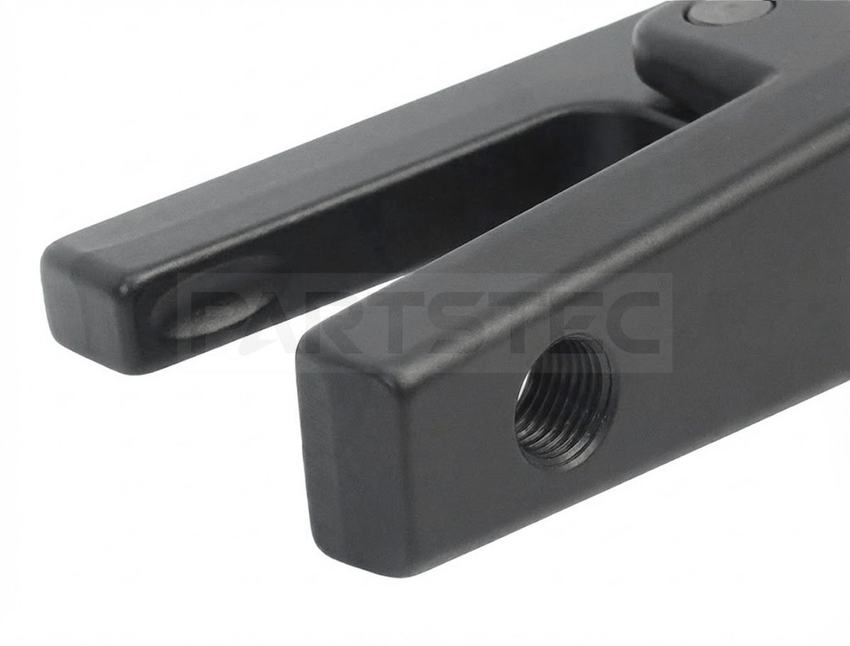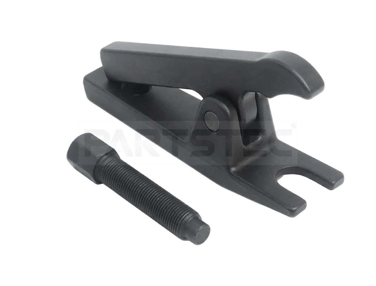 タイロッドエンドやボールジョイントを傷つけずに取り外すための専用工具です。先端の爪をエンドとアームの隙間に差し込み、ボルトをねじ込んでハンマーで叩くだけで簡単に分離させることが可能になります。タイロッドエンドブーツを傷めることなく安全に脱着できる構造です。足回り整備やブーツ交換作業に最適な整備工具です。