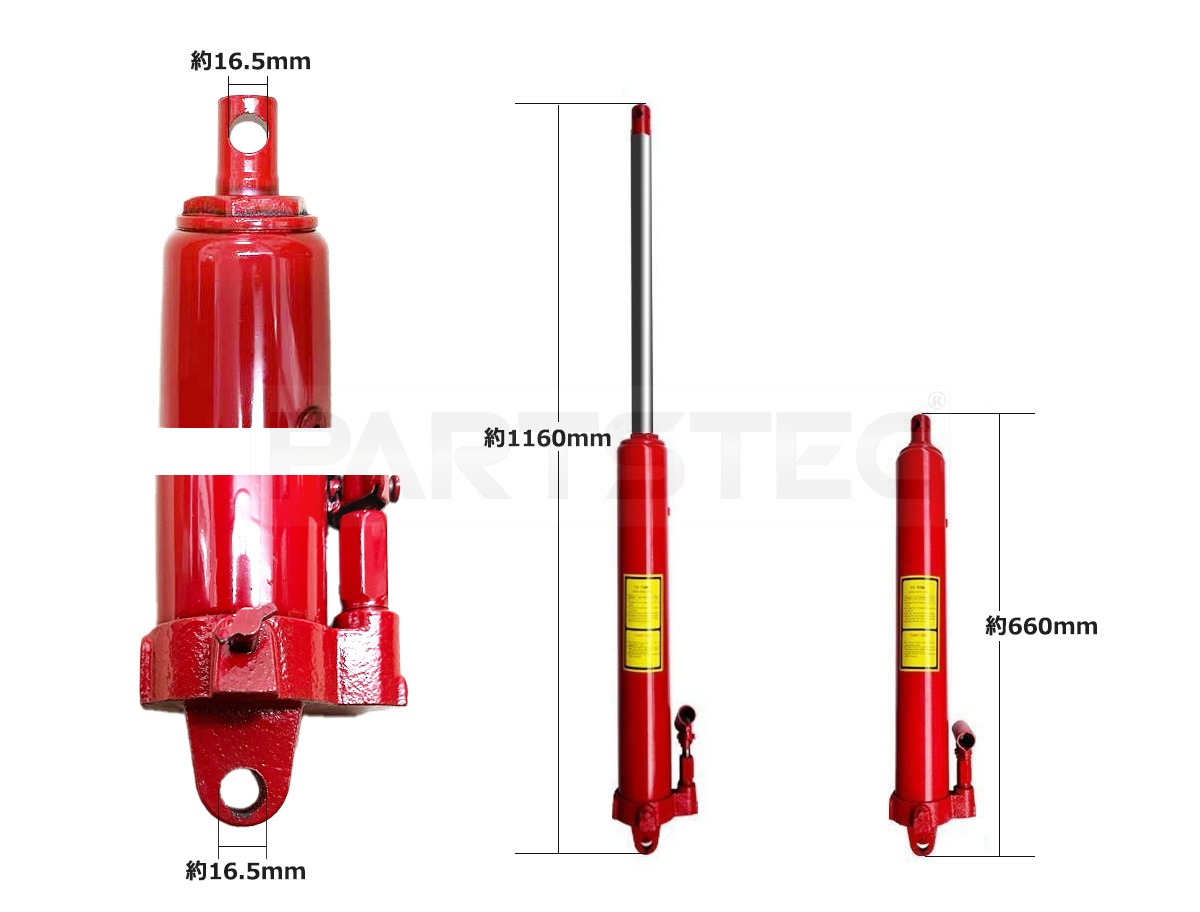 エンジンクレーン用の油圧シリンダーです。シングルポンプで最大約1160mmまで延長できます。