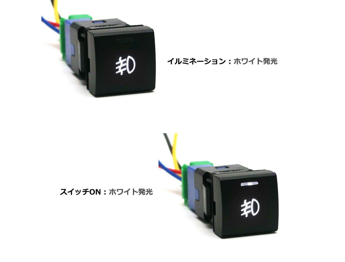 トヨタ・ダイハツ・スズキ車の純正スイッチホールに対応した埋め込み型ON/OFFスイッチです。インジケータ―付きですのでON/OFFが一目でわかり、フォグスイッチなどライト系のスイッチに最適です。純正スイッチパネルの空きスペースへ違和感なくすっきり収めることができます。