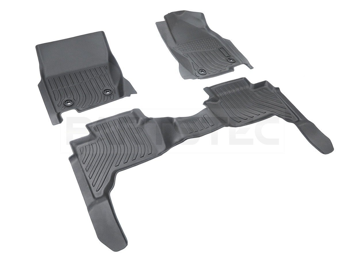 ランドクルーザー250用の3Dフロアマット フロント、リアの3点セットです。専用設計による抜群のフィット感と高品質TPE素材を使用した防水、耐摩耗、耐汚れ、柔軟性にも優れた商品になります。3D立体構造により泥汚れや埃やゴミがマットの外に飛び散る心配もなくなります。