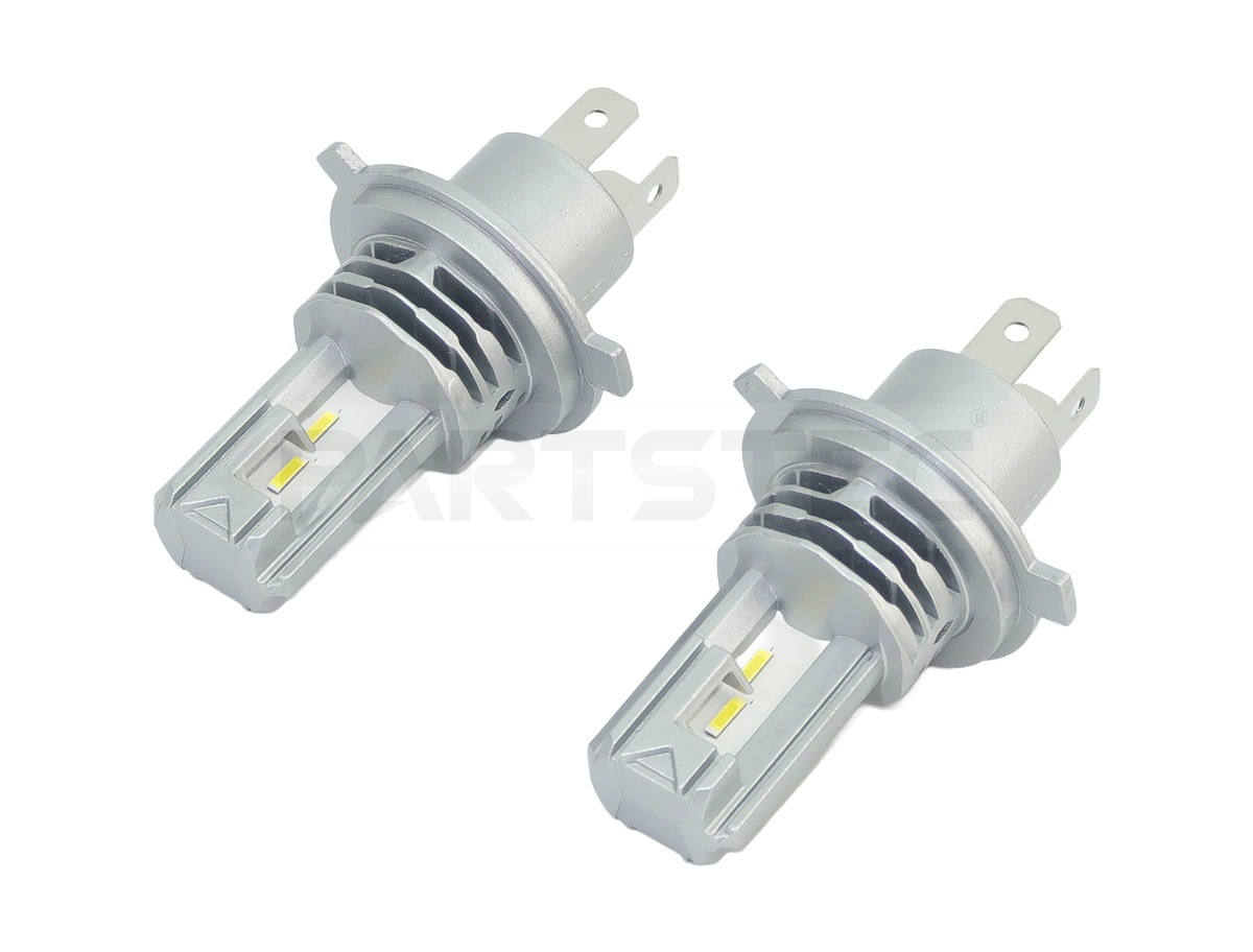 H4ソケット規格のLEDヘッドライトバルブ(Hi/Lo切替)の2個セットです。純正バルブと同じ感覚で取り付け可能なポン付け設計。加工などは一切不要です。ファンレス型のコンパクトデザインにより省スペースかつ高性能なLEDヘッドライトです。高輝度の1860SMDチップを搭載し、片側6000ルーメンの光を放ちます。本体はアルミ製のヒートシンク構造で長寿命と安定性を実現した製品です。