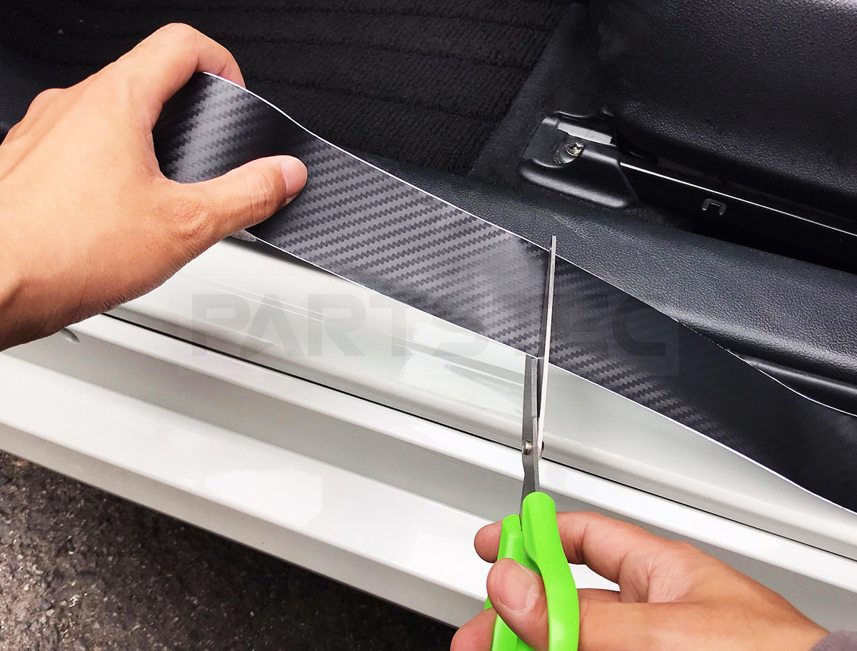 カーボン柄のカッティングシートになります。幅5㎝x1巻き10mと細部にも使用できるサイズとなっております。傷隠しや汚れ防止といった補修、保護材としてもお使いいただけます。裏面は両面テープとなっておりますので貼り付けるだけで簡単に取り付けが可能です。